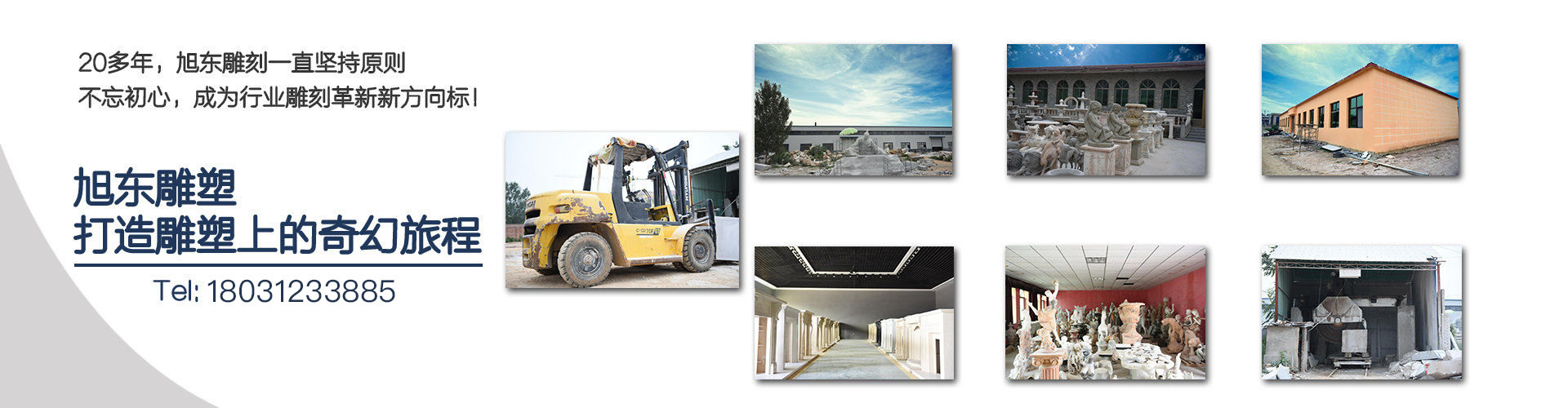 曲陽縣旭東雕刻有限公司制作出的作品時常流于國內(nèi)各個省區(qū)甚至國外,贏得廣大客戶信賴,公司地址位于河北省保定市曲陽縣羊平鎮(zhèn)經(jīng)濟(jì)開發(fā)區(qū), 歡迎各界熱愛雕刻的人員前來欣賞和購買。 公司主要從事石木雕刻、石板、壁爐、工藝品、不銹鋼、銅、鐵雕刻品的生產(chǎn)和銷售。 現(xiàn)已形成紀(jì)念碑雕刻、建筑雕刻、園林雕刻、西方人物雕刻、壁爐雕刻、動物雕刻、傳統(tǒng)雕刻、裝飾雕刻、不銹鋼及金屬雕刻、 石材制品及石板等十大系列,二十六個門類上萬個品種。